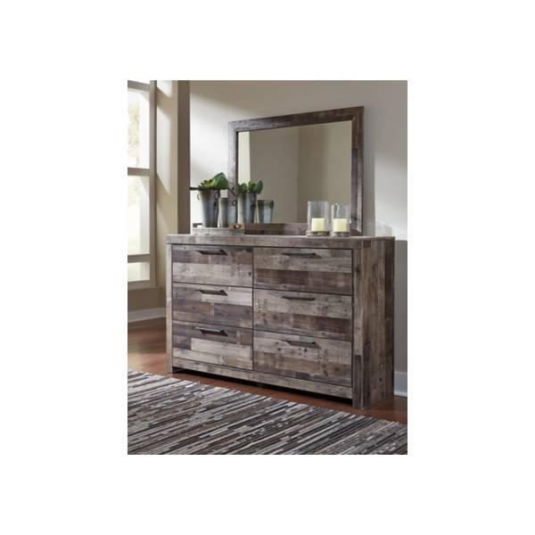 The Derekson Dresser and Mirror showcases a rustic design with a modern plank-style finish.Ample drawer storage combines with a sleek mirror to offer both practicality and charm.Crafted for durability and bold character, it brings a rugged yet refined look to your space.