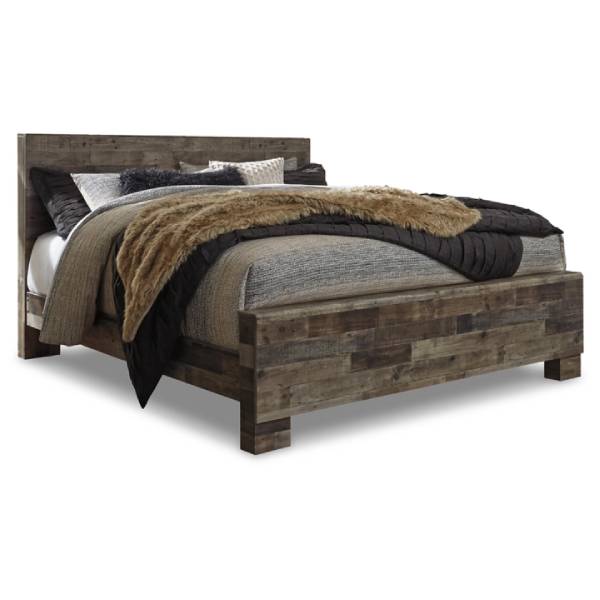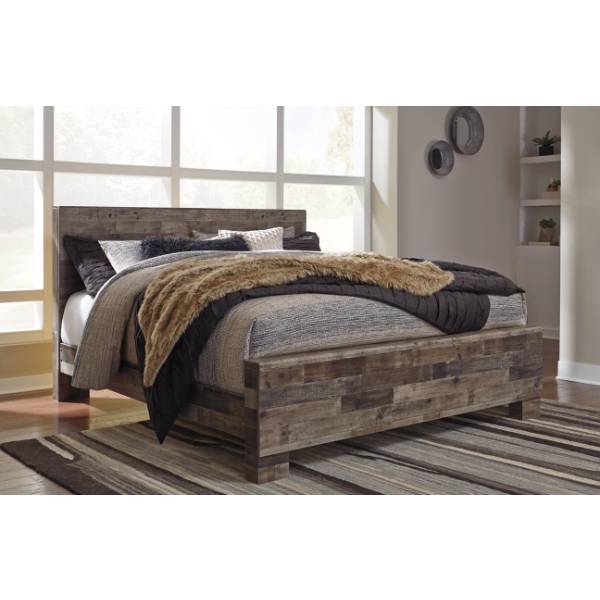 This bed requires a foundation or box spring, which, along with the mattress, is sold separately, allowing you to customize your sleep setup to your preferences. With its bold yet approachable design, the Derekson King Panel Bed is ideal for those who appreciate the merging of modern simplicity with rustic elegance.