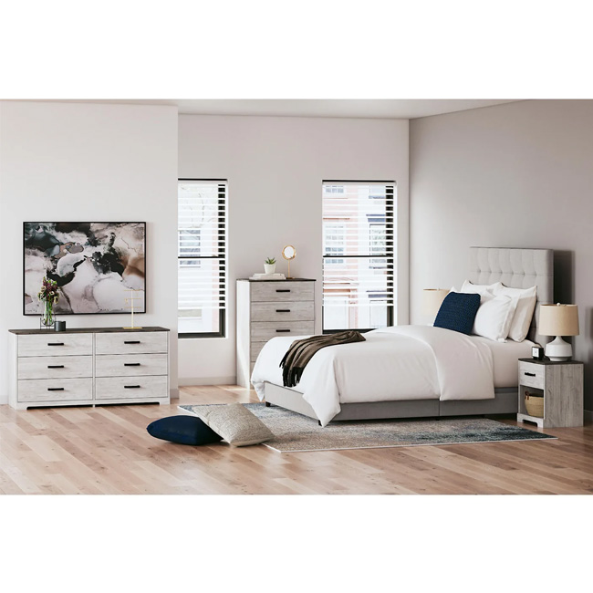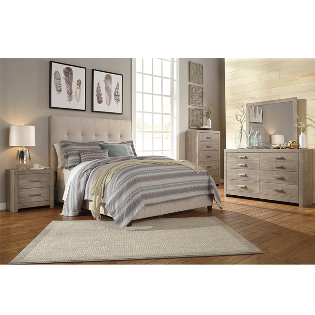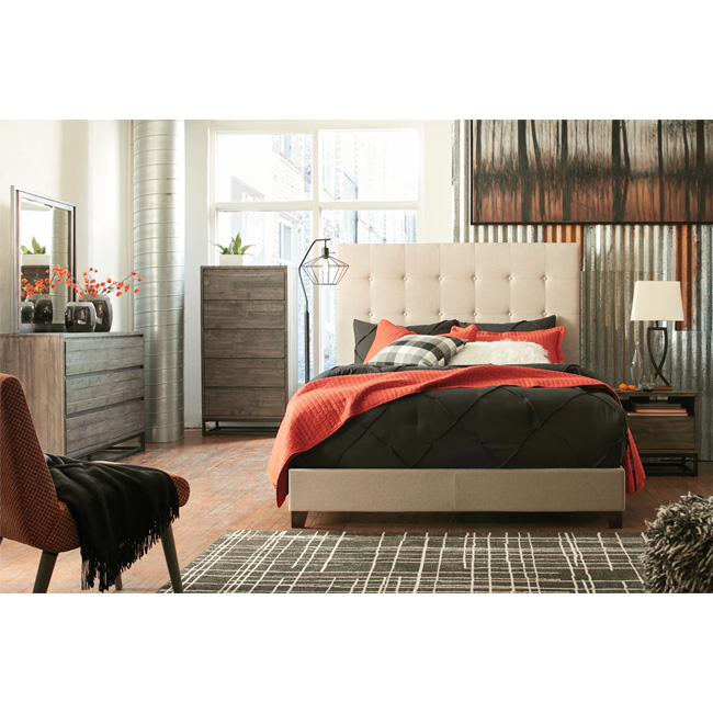 Indulge in modern comfort with this king upholstered bed, wrapped in soft pale beige fabric and featuring a chic button-tufted headboard. Its low-profile footboard and side rails create a serene, calming vibe, perfect for any bedroom retreat. Mattress and foundation/box spring sold separately.