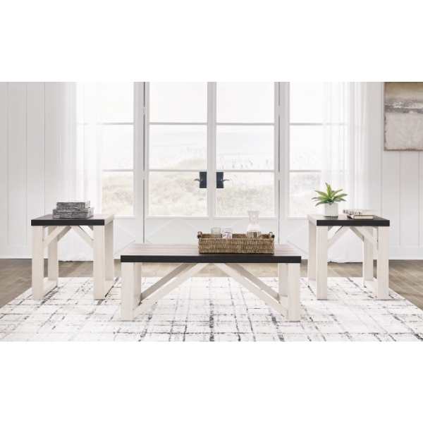 The Dorrinson Occasional Table Set adds a cozy farmhouse vibe to your space. With a two-tone finish and crossbuck detailing, it blends rustic charm and modern function. The set includes one coffee table and two end tables to complete your living room look.