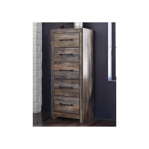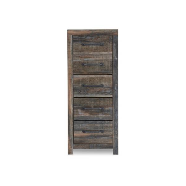 Designed with safety in mind, this storage unit adheres to the latest ASTM F 2057 stability standards. The drawers are built to extend fully, ensuring maximum access to your belongings while maintaining safety. The Drystan Narrow Chest is the perfect small-space solution, combining functionality with style. With minimal assembly required and an estimated assembly time of just five minutes, it’s a practical addition to your home, merging industrial and rustic elements with ease.
