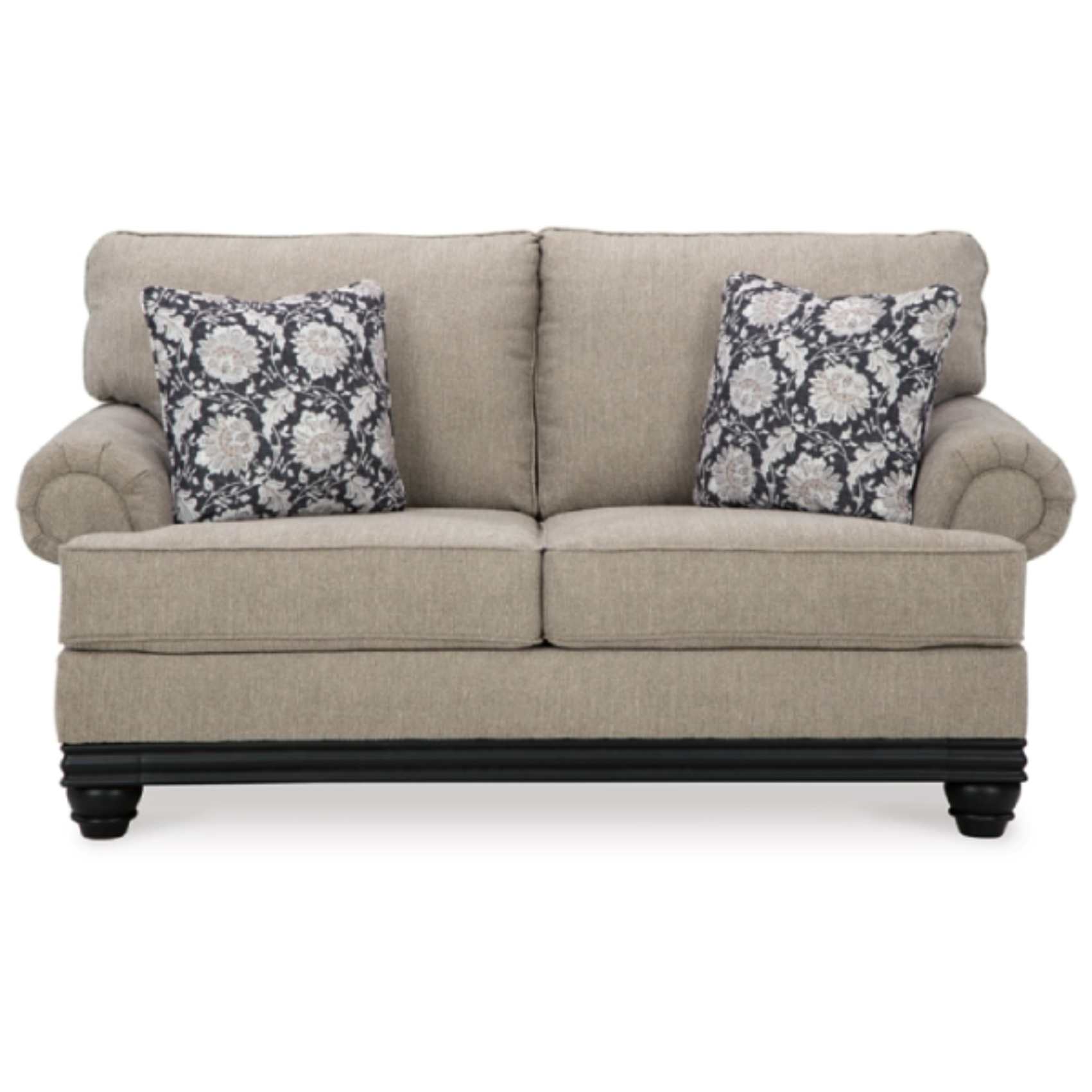 The Elbiani Sofa, Loveseat, Chair, and Ottoman set (SKU - PKG015047) is meticulously crafted to provide a harmonious blend of elegant design and ultimate comfort. This thoughtfully designed collection is intended for modern living spaces where style and practicality coexist seamlessly. The set features clean lines, a balanced silhouette, and an inviting upholstery that is both visually appealing and supremely comfortable. The subtle texture and neutral tones of the fabric create a refined backdrop that integrates effortlessly with diverse interior décors, making it an ideal centerpiece for any home.
