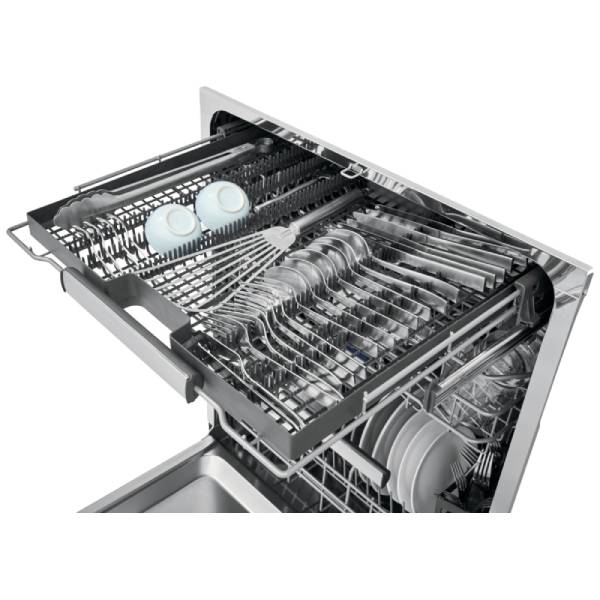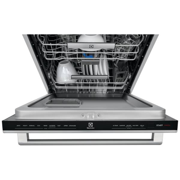 The Electrolux EDSH4944AS also includes an adjustable upper rack to accommodate larger dishes and bakeware, along with a third-level rack that offers extra space for utensils and small culinary tools. For targeted cleaning, the Target Wash Zones handle specialized items like water bottles, casserole dishes, and wine glasses, ensuring thorough coverage.
