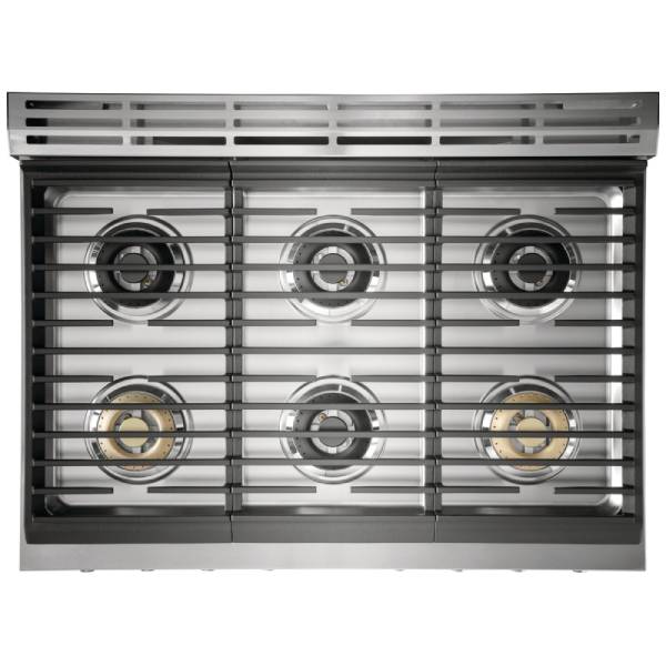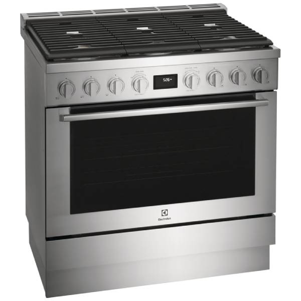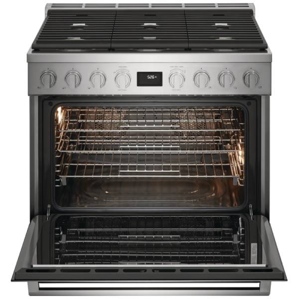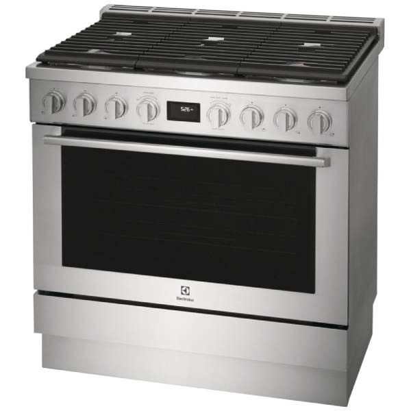 Electrolux ECFD3668AS Dual Fuel Range, 36 inch Exterior Width, Convection, 6 Burners, 4.4 cu. ft. Capacity, 1 Ovens, Stainless Steel colour Temperature Probe, Telescopic Gliding Extension Rack, True European Convection, Steam, Illuminated Knobs, Soft Close Door