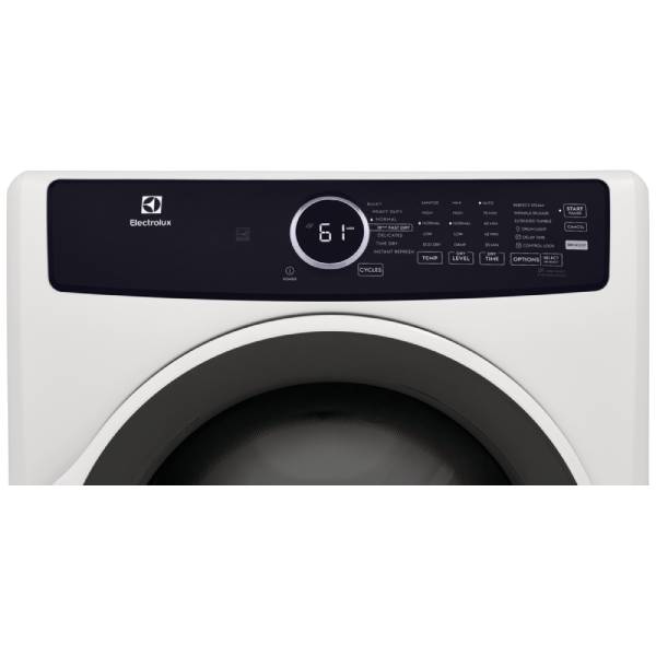 Electrolux ELFE743CAW Electric Dryer, 27 inch Width, 8.0 cu. ft. Capacity, Steam Clean, 5 Temperature Settings, Stackable, Steel Drum, White colour