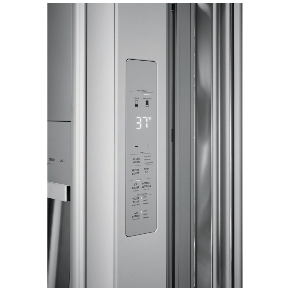 The Electrolux ERMC2295AS French Door Refrigerator embodies the perfect blend of style and functionality, offering a spacious 21.8 cubic feet capacity within its sleek 36-inch width design. Its ENERGY STAR certification not only enhances its elegance but also ensures energy-efficient operation, leading to significant savings on energy costs.