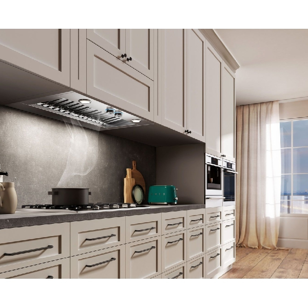 Elica’s exclusive sound-deadening technology reduces noise levels by up to 35% compared to typical range hoods, ensuring a quieter kitchen environment.