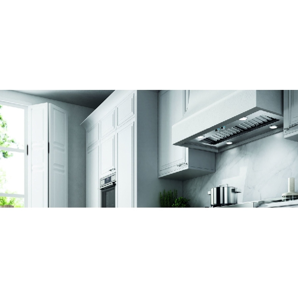 The Elica EAR146S4 Cabinet Insert offers professional-grade performance with a sleek and discreet design that fits seamlessly inside your cabinetry. This insert features heavy gauge stainless steel seamless construction, showcasing superior quality and Italian craftsmanship. The fully retractable knobs with blue backlighting can be hidden when not in use, preserving the hood's aesthetics. Available with a 1200 CFM blower, the Arezzo model provides exceptional ventilating power, ensuring easy maintenance, higher efficiency, and a cleaner kitchen. Elica’s patented professional baffle filters capture a higher percentage of contaminants and hold larger volumes of grease than traditional filters.