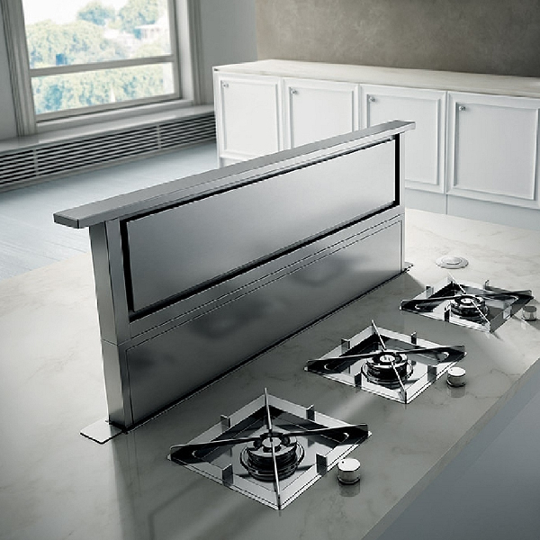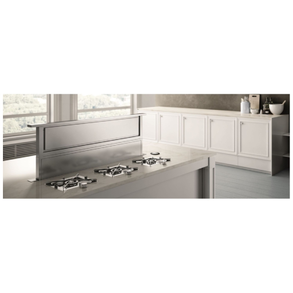Powerful Blower: Equipped with a 600 CFM blower, this hood ensures optimal ventilation. The blower is controlled by an intuitive electronic disc, and when not in use, the hood retracts flush with the countertop.