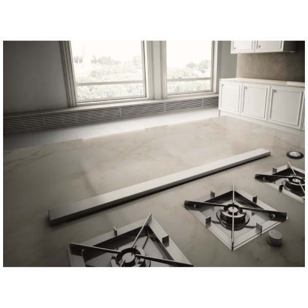Perimeter Aspiration: Increases aspiration capacity by 35%, making it the best downdraft hood on the market. Developed by Elica, this technology draws air through a narrowed channel around a faceplate, increasing suction without raising blower speed or energy consumption.