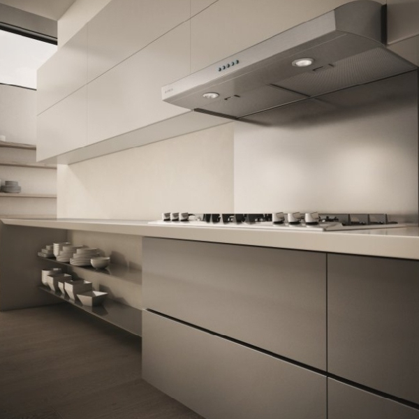 Allasio comes equipped with a 300 CFM internal blower, providing ample ventilating power for most kitchens. The attractive backlit push button controls emit a sophisticated white glow when activated, allowing users to manage blower speeds and dual LED lamps effortlessly.