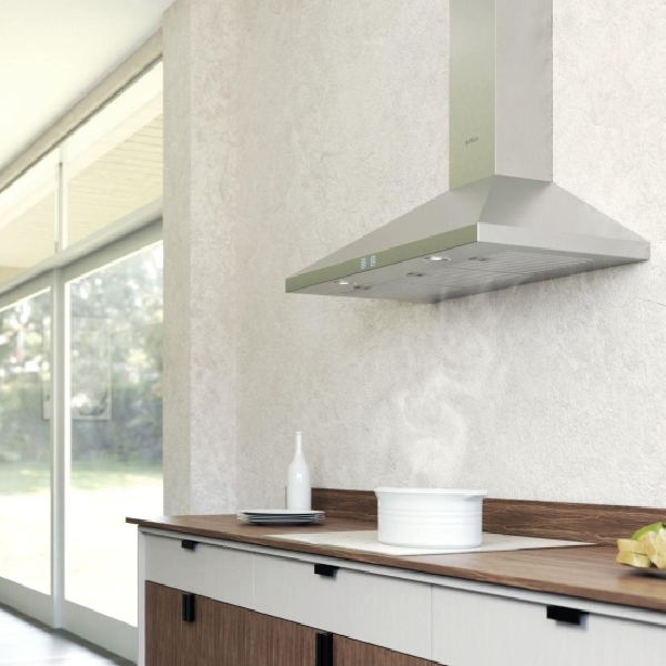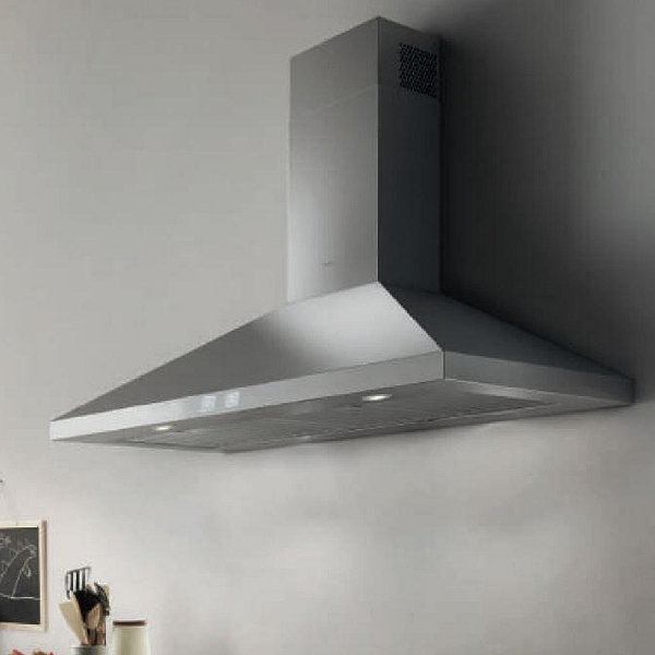 The Elica EBS636SS range hood combines a timeless pyramid design with modern controls, making it an excellent choice for those seeking both efficiency and comfort. Its pyramid-shaped angles and stainless steel finish create a striking visual statement in any kitchen. Available in 30 and 36-inch widths, the Bolsena features backlit touch controls, LED lighting, and a 4-speed blower. It also includes a telescopic chimney suitable for ceilings up to 9'1".