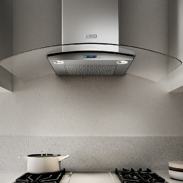 Elica ECM636S2 Range Hood, 36 inch Exterior Width, Chimney, Wall Mounted, 600 CFM, Halogen Lighting, Dishwasher Safe Filters, Stainless Steel