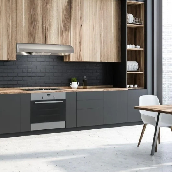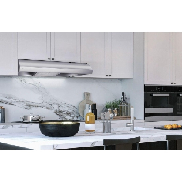 This 30-inch under-cabinet hood, featuring a slender 5" height and soft curves, is designed to modernize and fit perfectly into kitchens where space is at a premium.