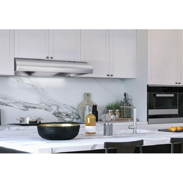 Elica EFS130WH Range Hood, 30 inch Exterior Width, Under-Cabinet, 2 Speeds, 190 CFM, 4.1 Sones, Incandescent Lighting, Dishwasher Safe Filters, White
