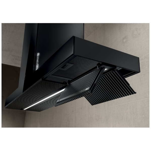 Elica’s commitment to research ensures that even the choice of materials becomes a crucial element in the innovation process. The body and flue align perfectly, creating a seamless edge that defines the entire product. The hood is available in various finishes, including full Stainless Steel, extra clear tempered glass with black screen printing, and White Intense Krion.
