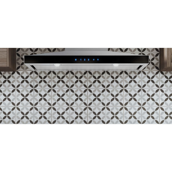 The Lugano range hood, available in 30" and 36" widths, is equipped with Perimeter Aspiration technology for optimal performance. It includes a powerful 600 CFM blower, dimmable LED lighting, and glass capacitive touch controls.