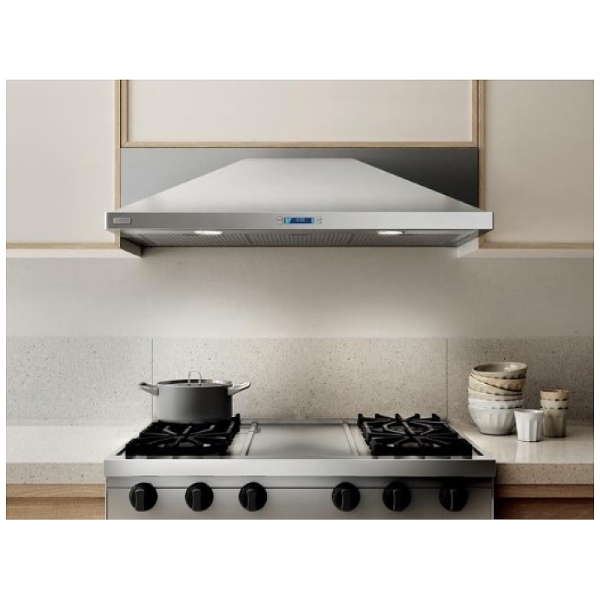 The Modena range hood offers versatility to suit almost any kitchen with its classic designer chimney appearance for under-cabinet installations and striking 9" high pyramid shape.