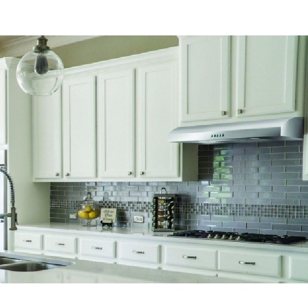 The Elica ENM230W1 Range Hood features a sleek 5" height and soft curves, perfect for modernizing kitchens where space is at a premium.