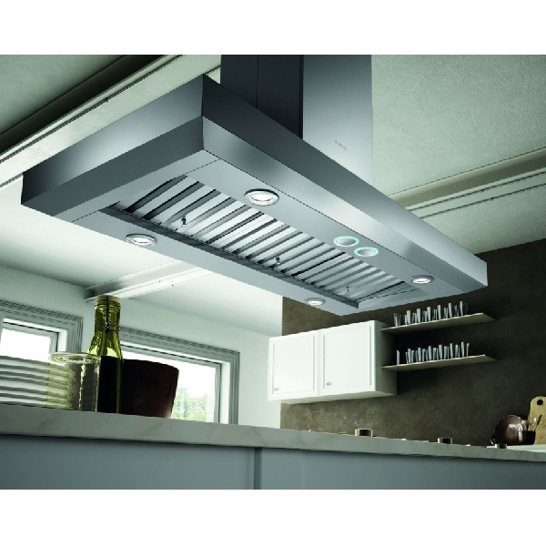 Power and Versatility: Available in 42" and 48" widths, the Vavano Island hood comes equipped with a powerful 600 CFM internal blower and backlit hidden metallic in/out knobs, which operate the 4-speed blower and LED lighting. Its professional stainless steel angled baffle filters provide easy maintenance and help keep your kitchen cleaner.