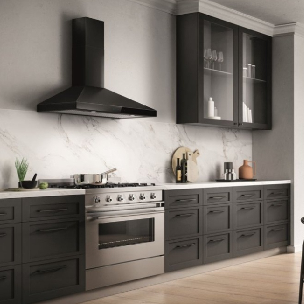 The clean lines and beautifully sloping angles of the Varna Black make it an Italian classic that will complement any kitchen. Elica's new black stainless steel finish provides a uniquely rich appearance and naturally hides fingerprints.