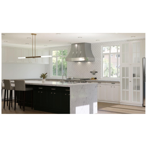 Designed for those passionate about gourmet cooking, the Oristano range hood is available in 36" and 48" widths. It can be equipped with a 600 or 1200 CFM blower, soft LED lighting, and Elica's patented HUSH sound suppression system, ensuring you can cook and converse comfortably. Built with Italian craftsmanship and precision, this range hood features flawless, seamless welding and superior fit and finish. The patented Easy Mounting system allows installation in just six steps, with the option for rear wall ducting.
