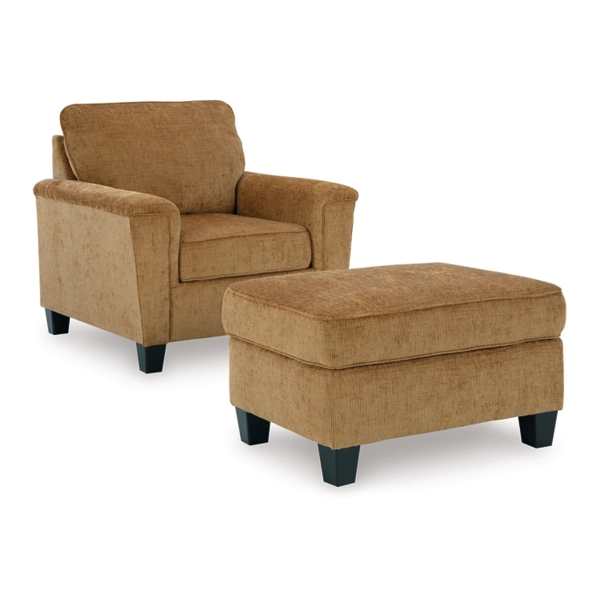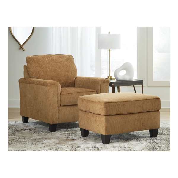 The Erinslane Chair and Ottoman set combines comfort and modern style in a way that’s both inviting and sophisticated. The plush upholstery and warm earthy tone are designed to provide ultimate relaxation, while the simple, contemporary lines of the set add a modern flair to your space. The tapered accent legs and abstract-patterned accent pillows further elevate the look, making this set both stylish and functional.