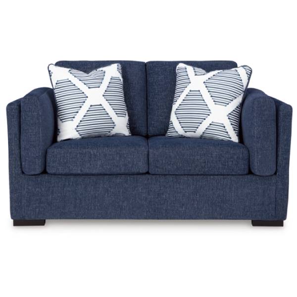 Meet carefree lounging with this contemporary loveseat in a fresh navy hue. Its casual style and arm bolster pillows ensure you stay comfy while relaxing in trend. Machine-washable Next-Gen Nuvella™ covers make maintenance a breeze, keeping your space looking sharp with minimal effort.