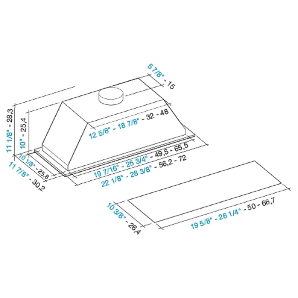 Falmec FIMAR22B6SS Cabinet Insert, 22 inch Exterior Width, 600 CFM, Outside / Ducting, LED, Dishwasher Safe Filters, 4, Stainless Steel colour Blower Included