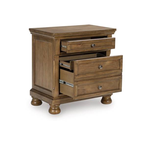 Add a touch of timeless charm to your bedroom with the Feddinger Two Drawer Night Stand, available at Teletime. This beautifully crafted piece presents a relaxed interpretation of casual traditional design, blending classic details with everyday functionality. Finished in a warm chestnut brown wood tone, it exudes an inviting feel that complements a wide range of interiors—from rustic and transitional to traditional spaces.
