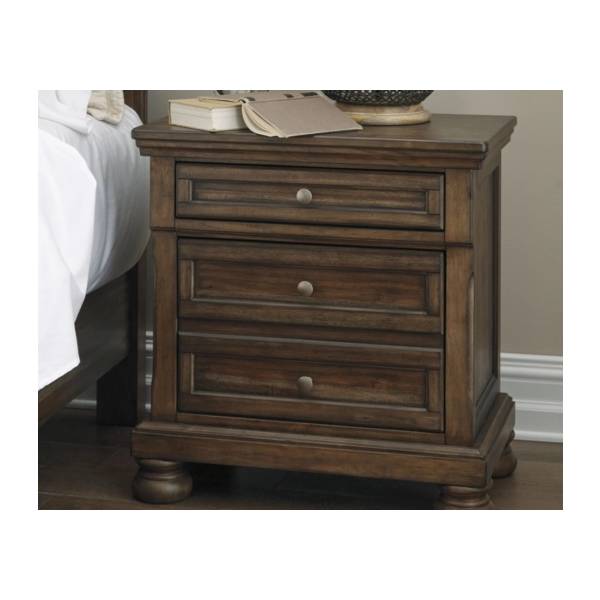 The Flynnter Two Drawer Night Stand brings classic charm and enduring craftsmanship to your bedroom.Its spacious drawers and elegant design offer both style and practicality.Crafted from rich wood tones, it adds warmth and timeless appeal to any space.