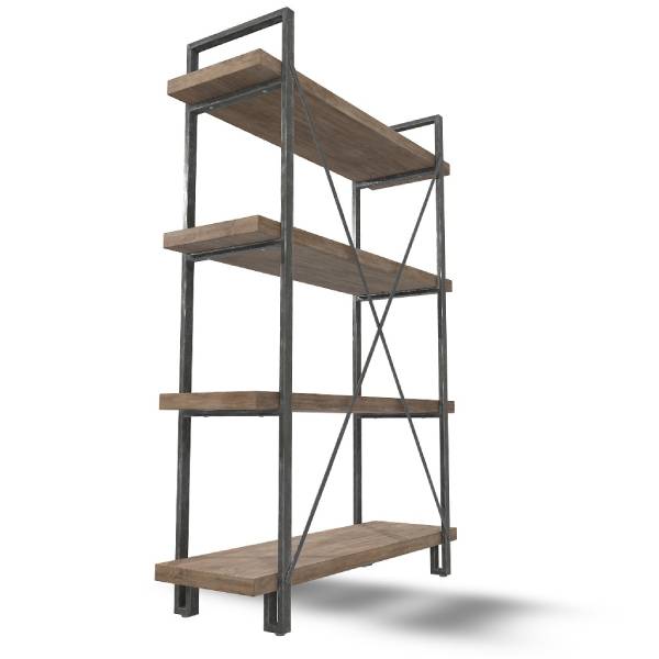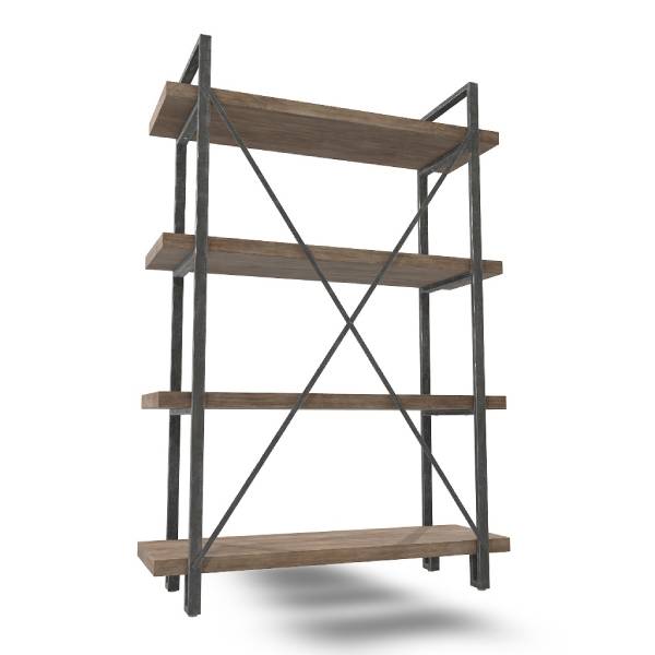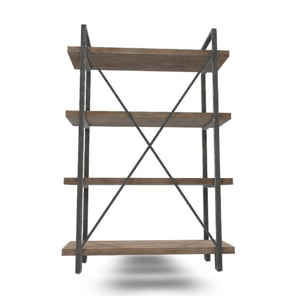 Add a touch of urban eclectic charm to your space with this eye-catching bookshelf. Featuring a sleek x-backed metal frame with a gray finish, it combines stylish sturdiness with modern flair. The four fixed gallery shelves offer ample space for storing books, displaying succulents, or showcasing picture frames, making organization both easy and aesthetically pleasing. Crafted from solid and engineered wood, this bookshelf brings both functionality and fashionable design to your home.
