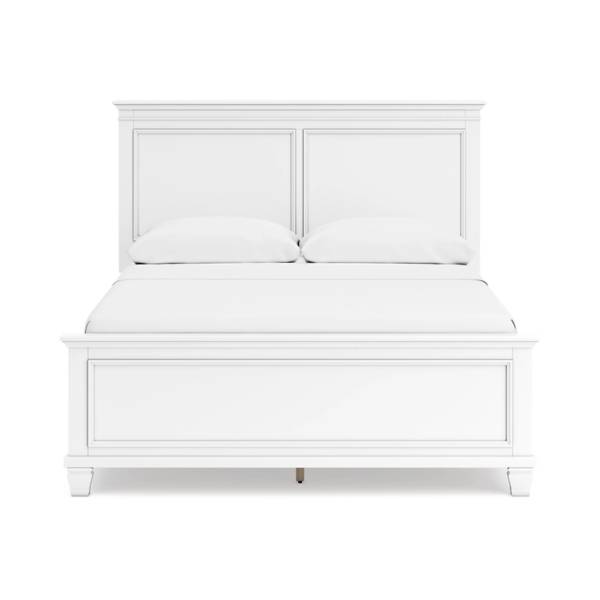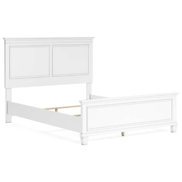 Constructed from durable hardwood solids and MDF substrate, the Fortman Queen Panel Bed is built for lasting appeal. Its clean white painted finish enhances its versatility, making it suitable for a variety of interior styles. The tapered feet provide a subtle yet sophisticated touch, while the sturdy design ensures long-term comfort and reliability.