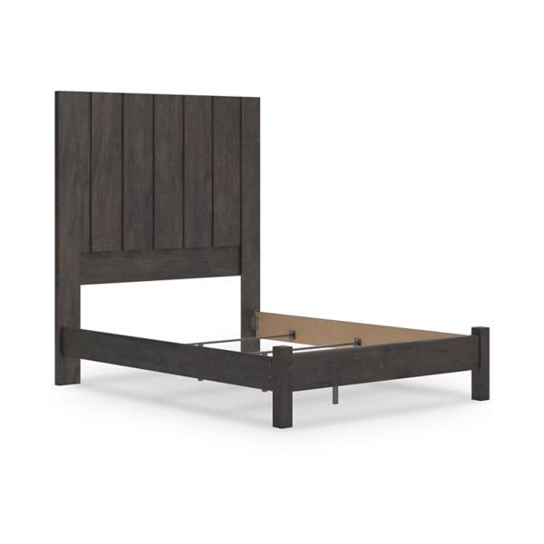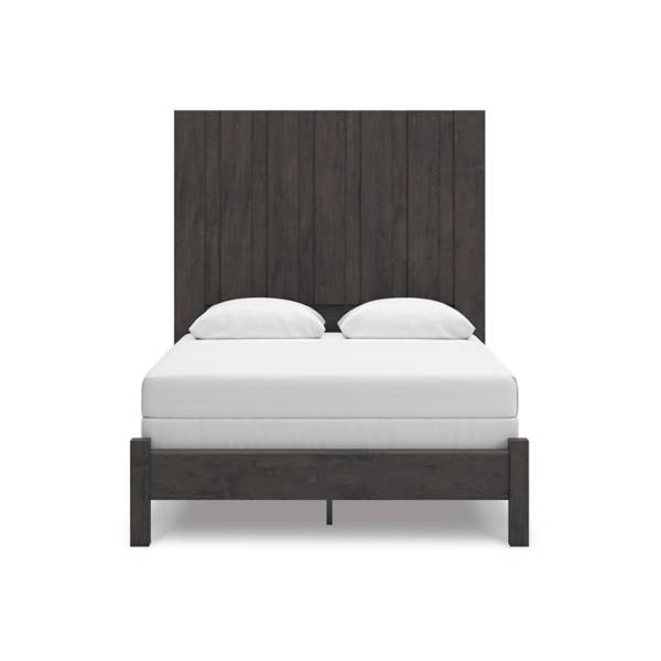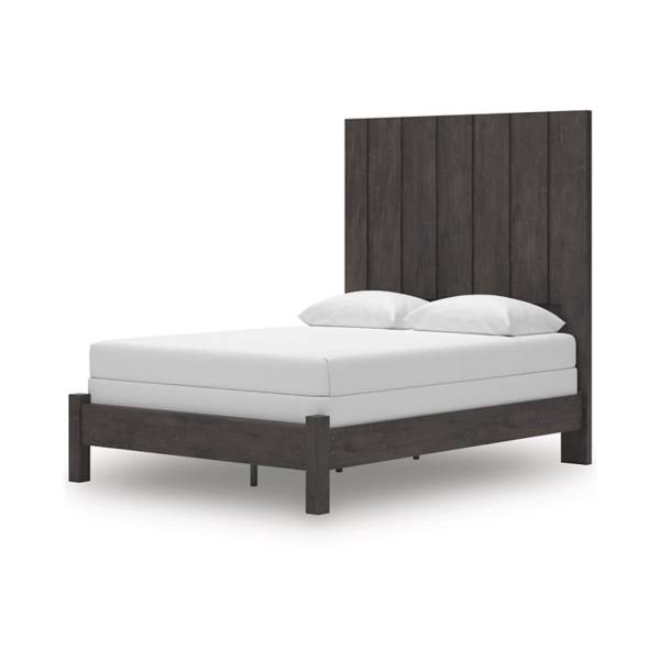 The Fraluna Queen Panel Bed offers a refined sense of modern elegance with its clean lines and dark neutral tones. This bed embodies a minimalist approach, bringing high style to any bedroom while maintaining great value. The vertical planks on the generously sized headboard add depth and the illusion of added height, making it a striking focal point that enhances the overall aesthetic of your space.
