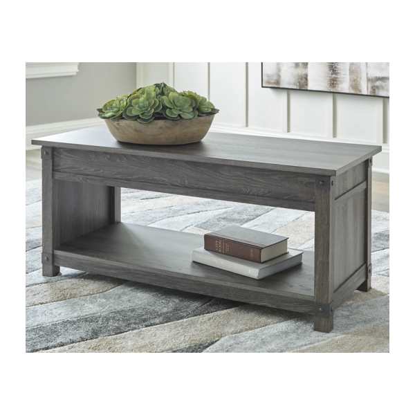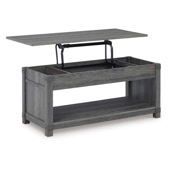The Freedan Rect Lift Top Cocktail Table is where contemporary design meets functional innovation. Created with a modern-rustic aesthetic, this cocktail table offers much more than just a surface to set your drinks. Its standout lift-top feature allows the table to transform into a raised workspace or casual dining spot, perfect for today's versatile living spaces.