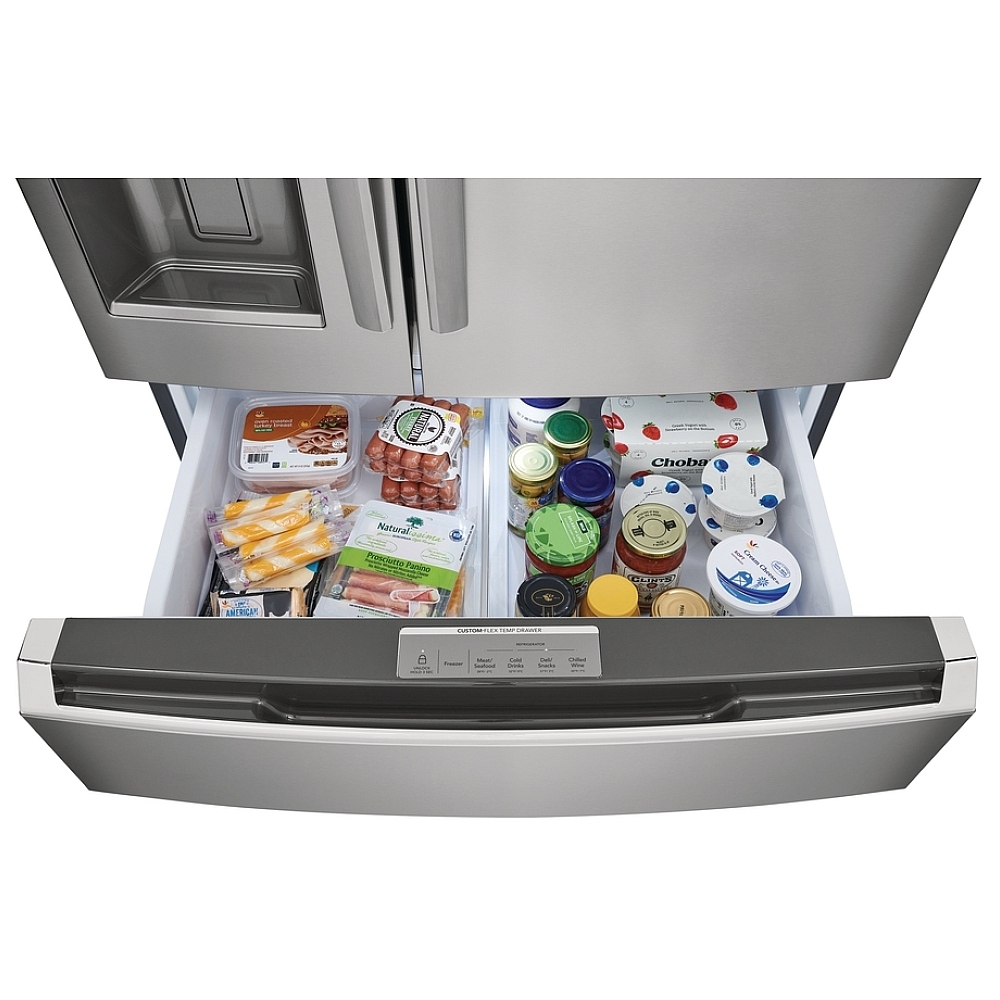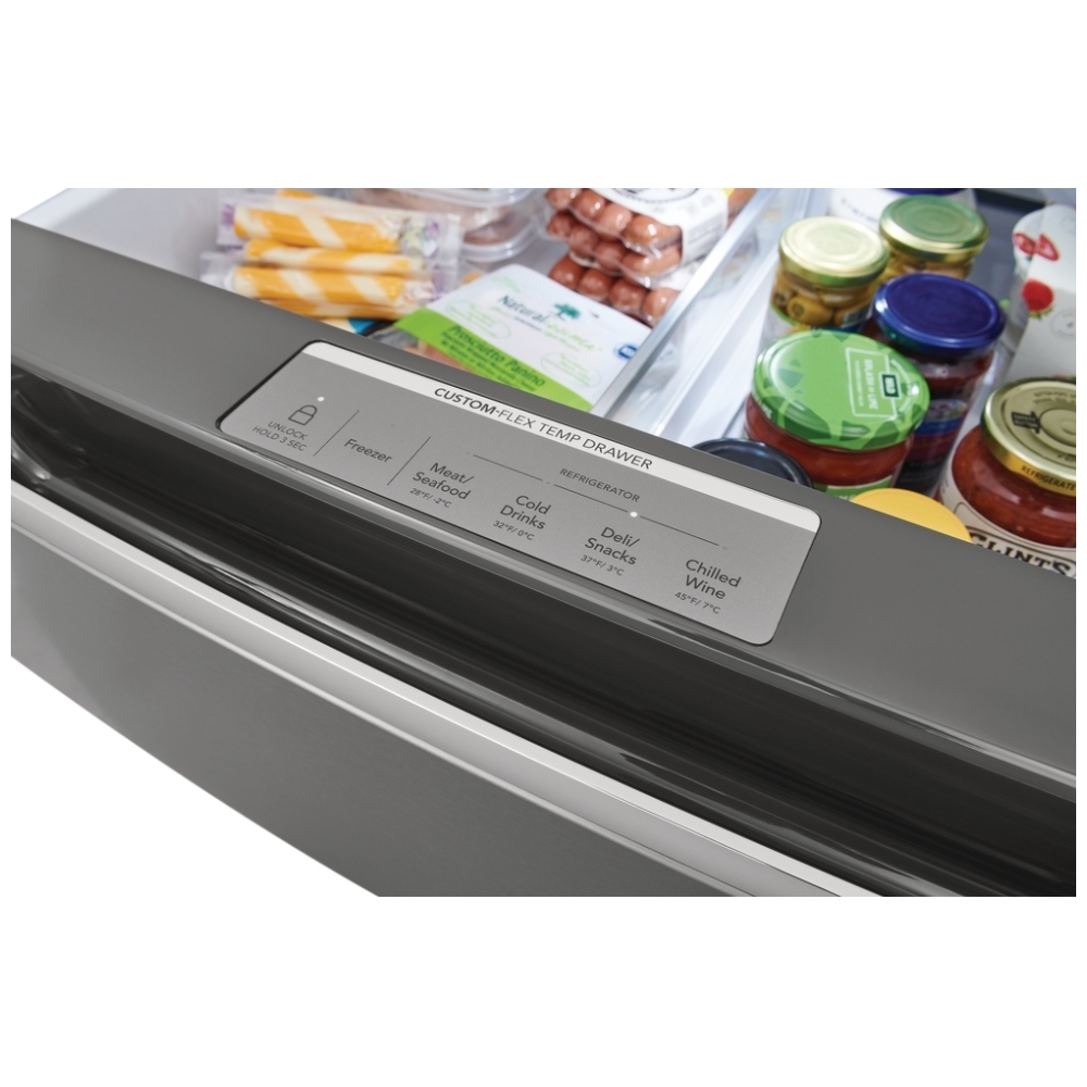 The Custom-Flex® Temp Drawer is another impressive addition to this refrigerator, offering customizable temperature settings to suit various storage needs. Whether you require extra cold storage for meats or prefer a slightly warmer environment for beverages, this drawer provides flexibility for different household requirements.