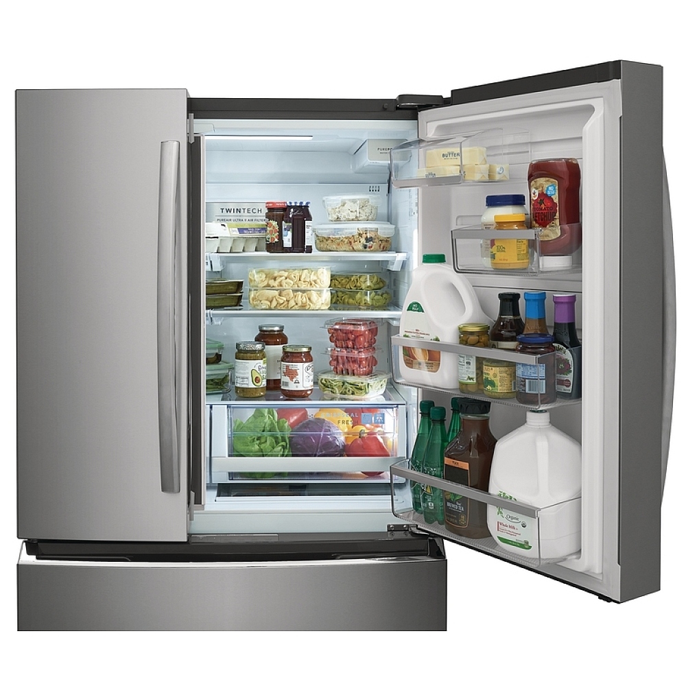 Introducing the Frigidaire Gallery GRMN2872AF French Door Refrigerator from Teletime, setting a new standard of sophistication in refrigeration. With its expansive 36-inch width and generous 27.2 cubic feet capacity, this refrigerator combines elegance with efficiency, transforming your kitchen into a culinary haven.
