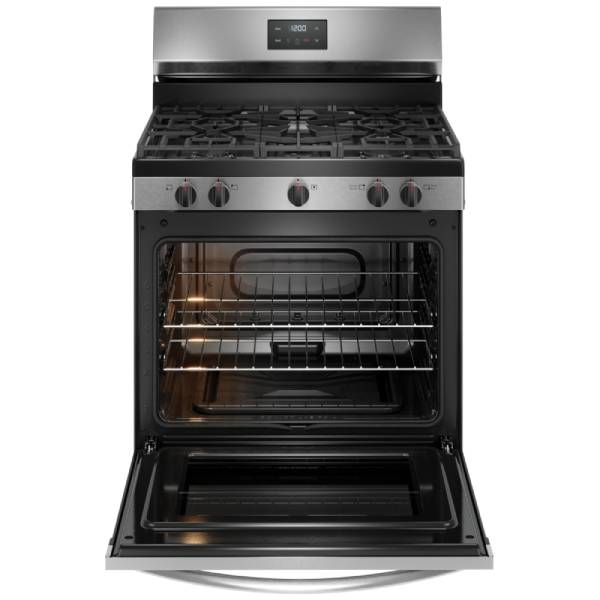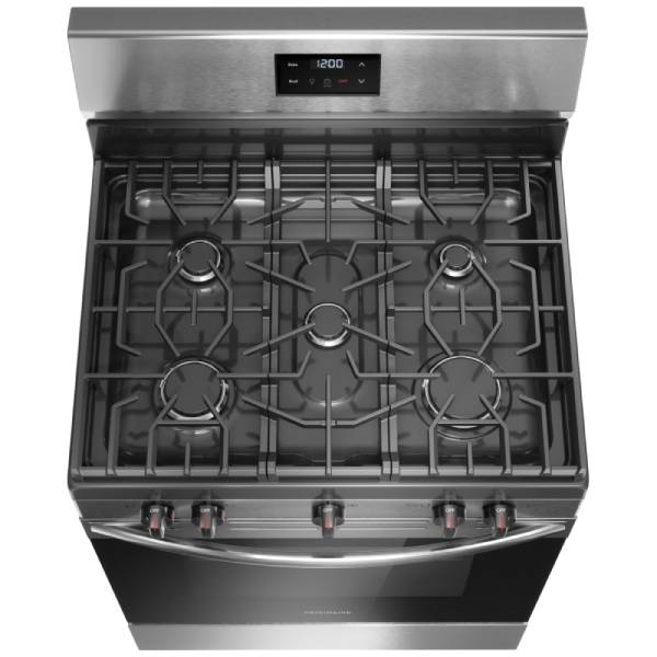 Cleaning is made effortless with removable, dishwasher-safe burner caps, ensuring your cooktop remains spotless after every use. Proudly assembled in the USA, this Frigidaire range combines high performance with practical features, making it an indispensable addition to any modern kitchen.