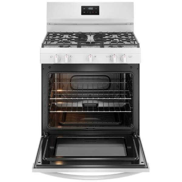 Proudly assembled in the USA, the Frigidaire FCRG3052BW Gas Range brings powerful cooking performance and thoughtful design into your kitchen, making it the perfect choice for those seeking efficiency, flexibility, and style.