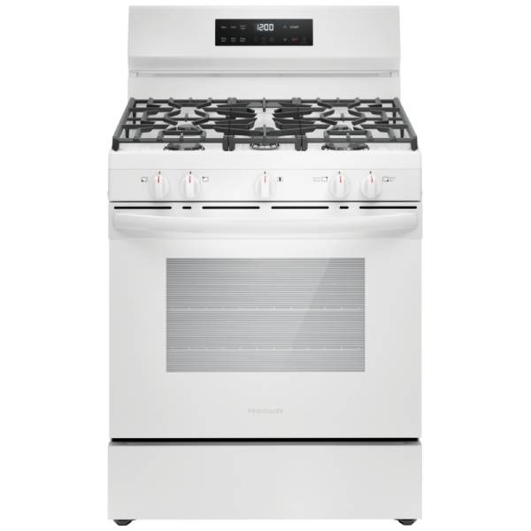 Frigidaire FCRG3062AW Gas Range, 30 inch Exterior Width, Self Clean, 5 Burners, 5.1 cu. ft. Capacity, 1 Ovens, White colour