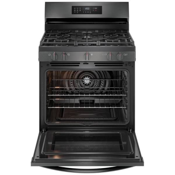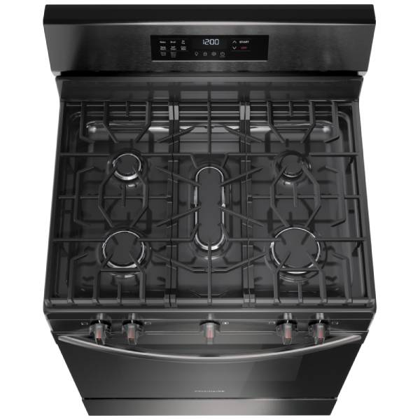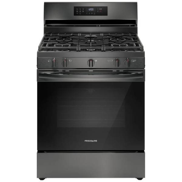 Frigidaire FCRG3083AD Gas Range, 30 inch Exterior Width, Self Clean, Convection, 5 Burners, 5.1 cu. ft. Capacity, Storage Drawer, Air Fry, 1 Ovens, Black Stainless Steel colour