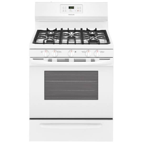 Frigidaire FFGF3054TW Gas Range, Gas, 30 inch Exterior Width, Self Clean, 5 Burners, 5.0 cu. ft. Capacity, Storage Drawer, 1 Ovens, White colour