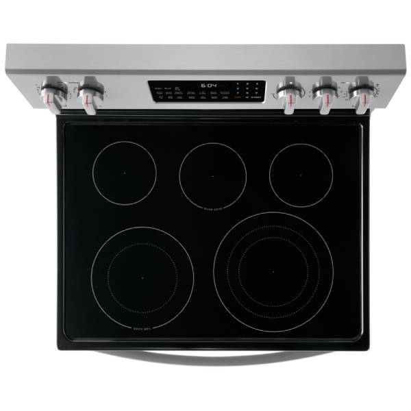 Frigidaire Gallery GCRE306CAF Electric Range, Electric, 30 inch Exterior Width, Self Clean, Convection, 5 Burners, 5.7 cu. ft. Capacity, Storage Drawer, Air Fry, 1 Ovens, Stainless Steel colour AirFry Range, True European Convection, Temperature Probe