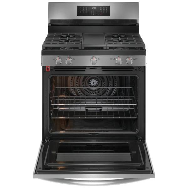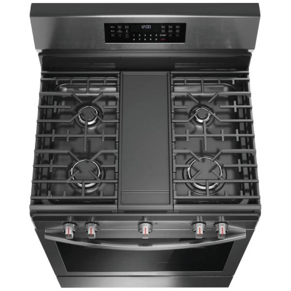 Frigidaire Gallery GCRG3060BD Gas Range, 30 inch Exterior Width, Self Clean, Convection, 5 Burners, 5.1 cu. ft. Capacity, Storage Drawer, Air Fry, 1 Ovens, Black Stainless Steel colour Temperature Probe, Steam Bake, Steam Roast, Air Sous Vide, Griddle, True European Convection