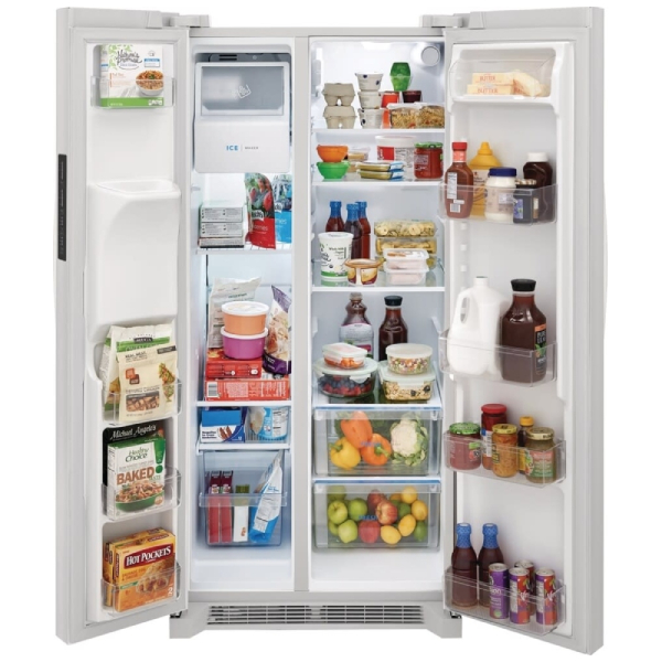 Presenting the Frigidaire FRSS2323AW Side-by-Side Refrigerator—a symphony of refrigeration crafted to elevate your culinary domain. Within its 33-inch width and capacious 22.2 cu. ft. capacity, this appliance seamlessly blends practicality with elegance, embodying the epitome of modern sophistication.