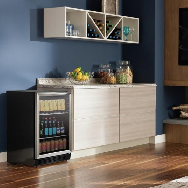 Adjustable Glass Shelving: Customize the interior layout to suit your needs with adjustable glass shelves that provide flexible storage options for different bottle and can sizes.