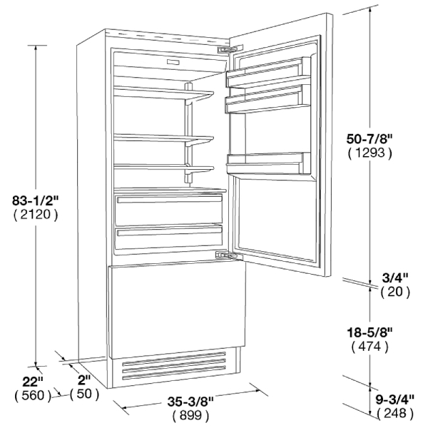Fulgor Milano F7IBM36O2-R Built-In Refrigerator, 36-Inch Width, Counter Depth, 18.5 cu. ft. Capacity, Panel Ready Right Hand Swing