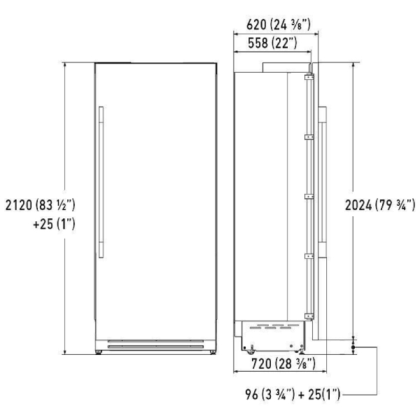This stainless column refrigerator is a perfect blend of beauty and functionality. Featuring an elegant 304 stainless steel-cladded door and matching pro handle, these columns seamlessly complement our Fulgor Milano stainless cooking products. The interior boasts a brilliant white aluminum finish with brushed aluminum and stainless accents, ensuring both aesthetic appeal and durability. Designed to preserve the quality of your ingredients, this refrigerator combines elegant design with commercial-grade performance. A dedicated compressor and evaporator maintain consistent and precise temperatures throughout.