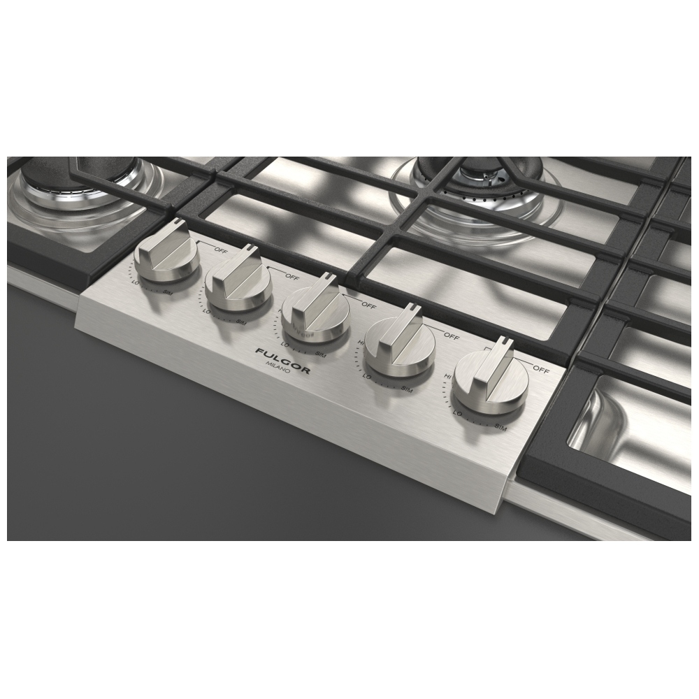 Fulgor Milano F4PGK365S1 Gas Cooktop, 36 inch Exterior Width, 5 Burners, Stainless Steel colour