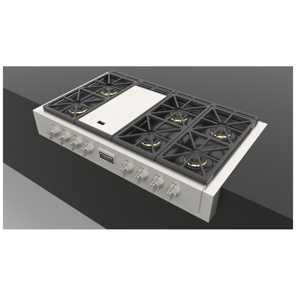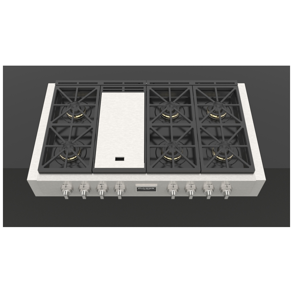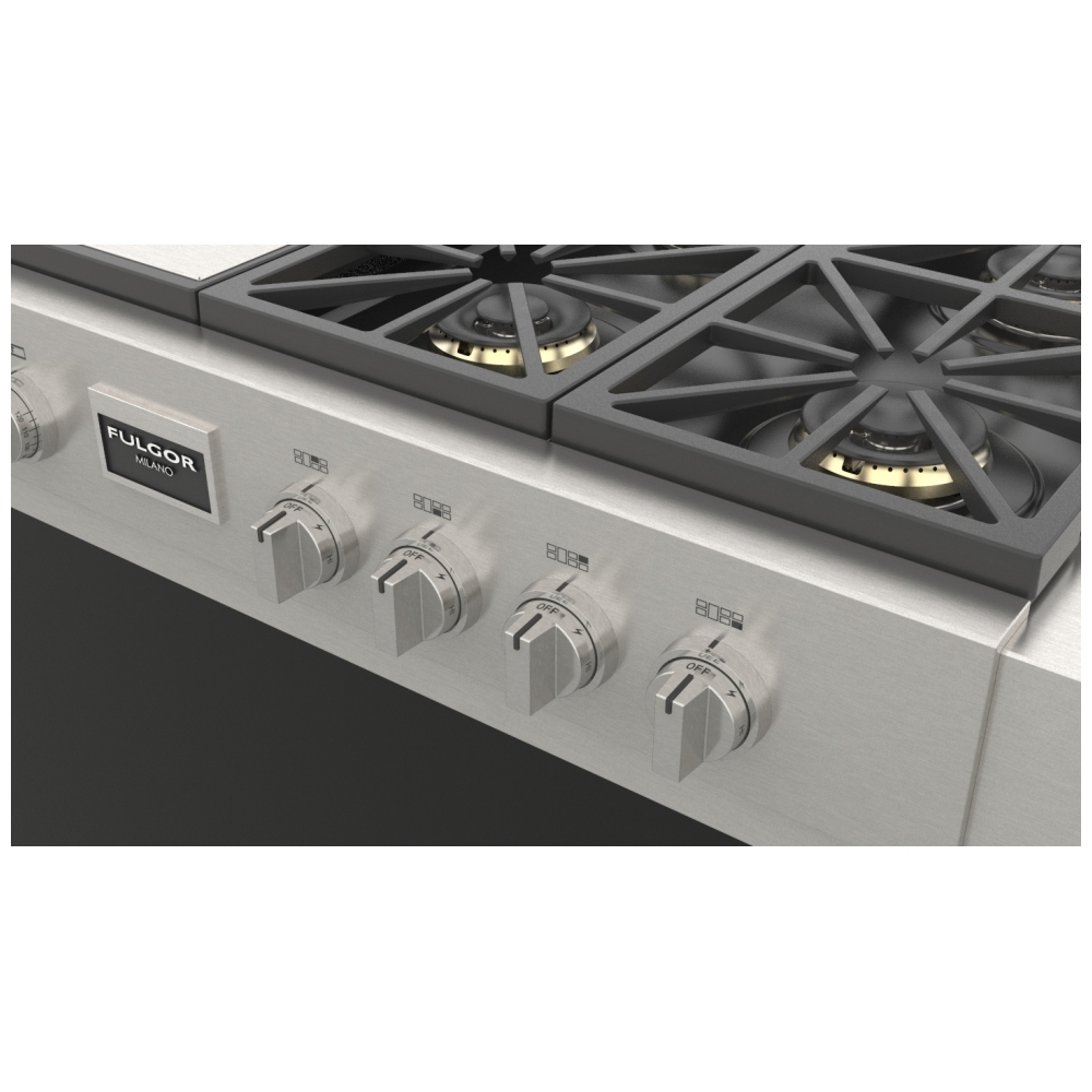 Fulgor Milano F6GRT486GS1 Gas Rangetop, 48 inch Exterior Width, 6 Burners, Stainless Steel colour , Griddle, Grill